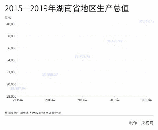 2019年,湖南地區(qū)生產(chǎn)總值接近4萬億元,達39752.12億元,按不變價格計算,比上年增長7.6%,符合7.5%—8%的預期目標。
