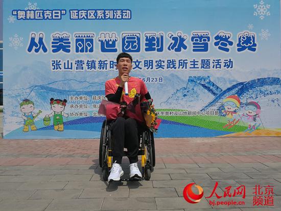 平昌冬殘奧會冠軍、土生土長的延慶本地人陳建新與大家分享了他的冬奧會追夢歷程。人民網(wǎng)尹星云 攝
