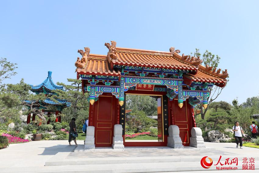 步入山東展園,第一景便是齊魯迎賓。這里以孔府重光門(mén)為設(shè)計(jì)原型,提名“齊魯園”,寓意儒家思想是中華民族的精神家園,隱喻孔子“天下第一家”的概念。人民網(wǎng)尹星云 攝