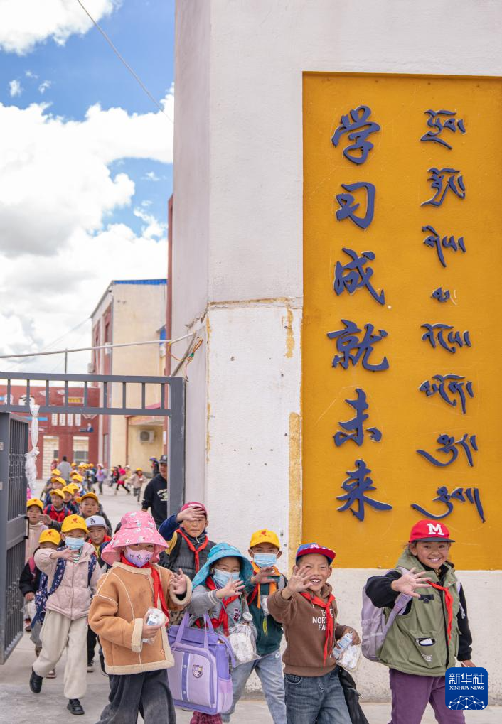 班戈縣中石化小學(xué)學(xué)生放學(xué)后走出校門(mén)(6月22日攝)。