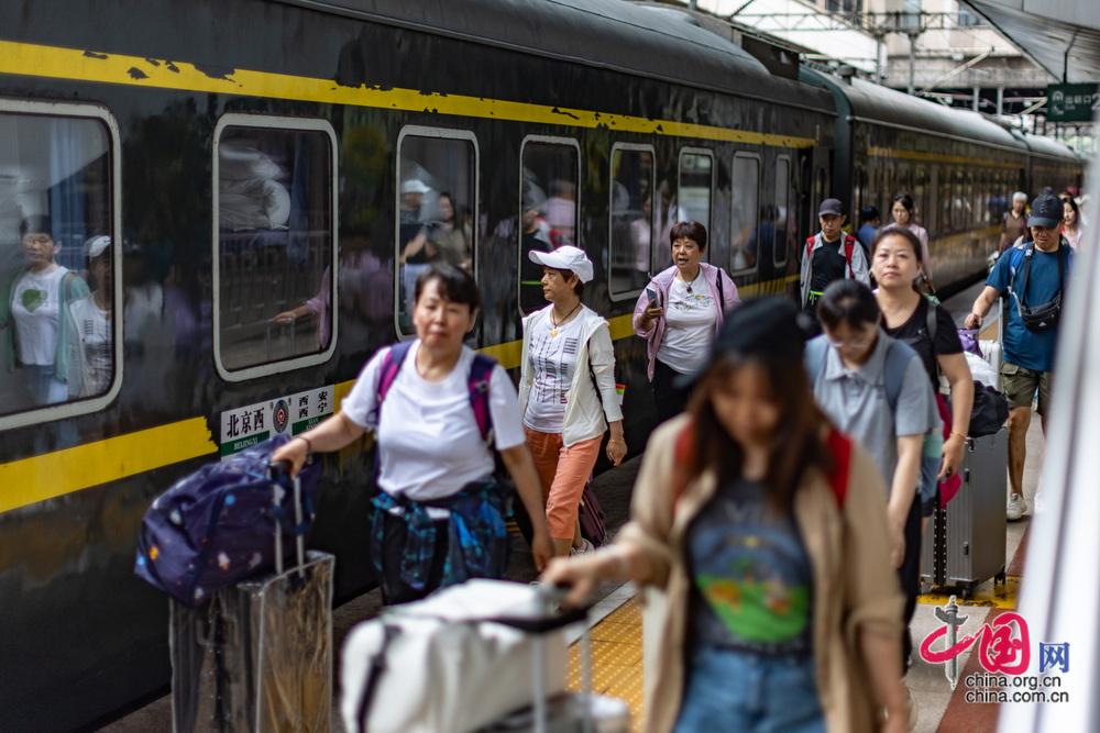 7月1日,“京藏號”旅游列車從北京西站出發(fā),450名游客開啟為期14天的旅途。中國網(wǎng)記者 鄭亮攝