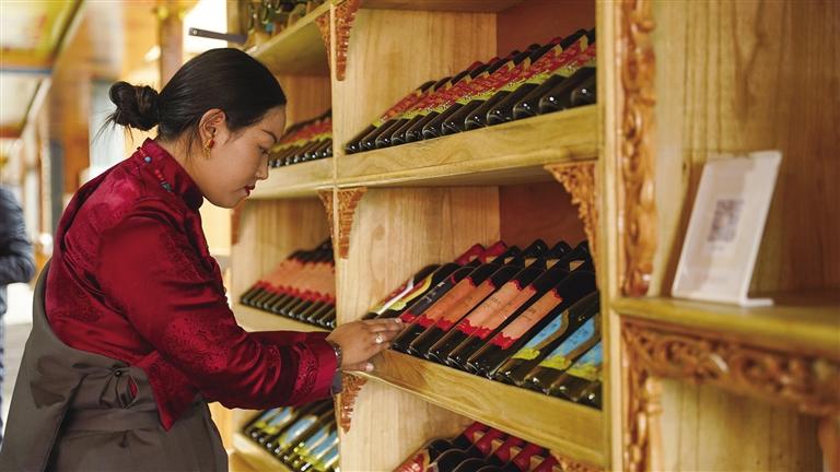 為了讓桑日葡萄酒產(chǎn)品走出去,湖南省援藏工作隊(duì)牽線搭橋,利用葡萄酒招商會(huì)、拉薩藏博會(huì)、北京中小企業(yè)年會(huì)及招商引資會(huì)等平臺(tái)做好宣傳推介,并幫助其成功上線湖南省消費(fèi)幫扶公共服務(wù)平臺(tái),形成了線上線下一體的營(yíng)銷模式。2023年,促成帕竹酒莊與湖南中車、岳陽(yáng)市供銷社等單位簽訂定向購(gòu)銷合同,累計(jì)帶動(dòng)桑日葡萄酒銷售額達(dá)230萬(wàn)元。