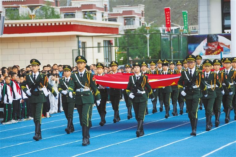 拉薩北京實(shí)驗(yàn)中學(xué)舉行升國(guó)旗儀式。