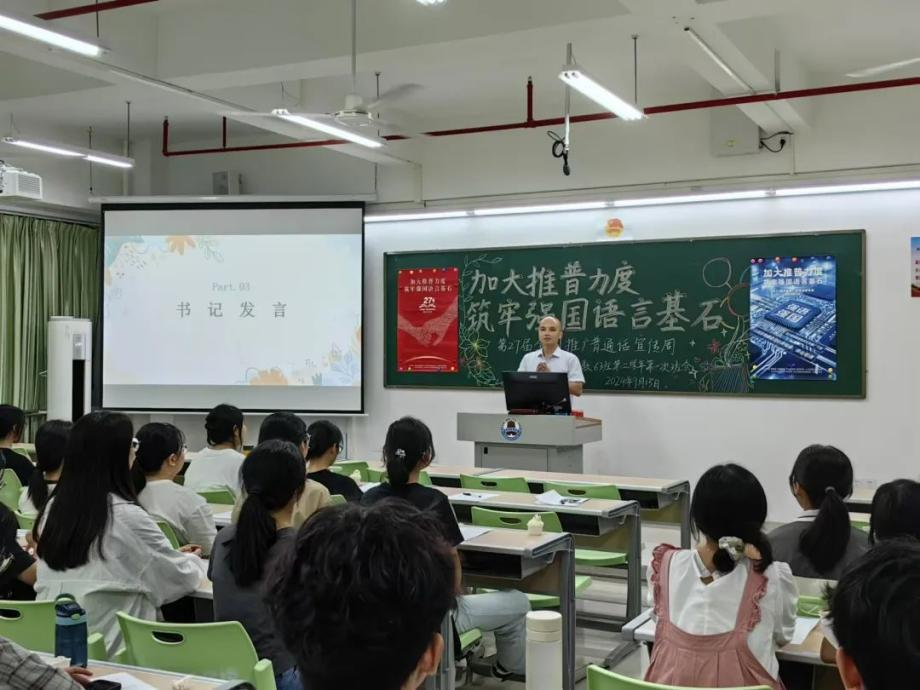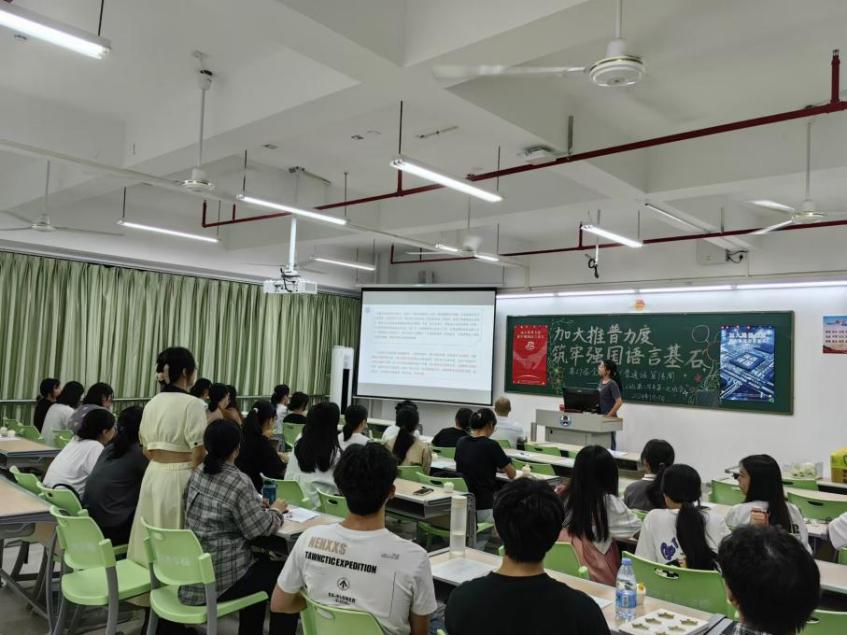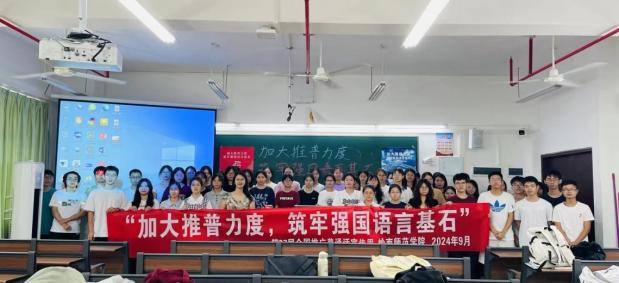 新時(shí)代教育高質(zhì)量發(fā)展的浪潮中,加強(qiáng)國(guó)家通用語(yǔ)言文字教育是提升國(guó)民素質(zhì)、促進(jìn)文化認(rèn)同、推動(dòng)社會(huì)進(jìn)步的重要基石。嶺南師范學(xué)院積極響應(yīng)國(guó)家關(guān)于加強(qiáng)國(guó)家通用語(yǔ)言文字推廣普及的號(hào)召,圍繞“加大推普力度,筑牢強(qiáng)國(guó)語(yǔ)言基石”第27屆全國(guó)推普周主題,依托學(xué)校《教師語(yǔ)言》課程組,成功舉辦了一系列豐富多彩、特色鮮明的語(yǔ)言文化活動(dòng),不僅彰顯了學(xué)院在師范教育領(lǐng)域的深厚底蘊(yùn)與創(chuàng)新活力,更為國(guó)家語(yǔ)言文字建設(shè)和教育強(qiáng)國(guó)戰(zhàn)略貢獻(xiàn)了重要力量。