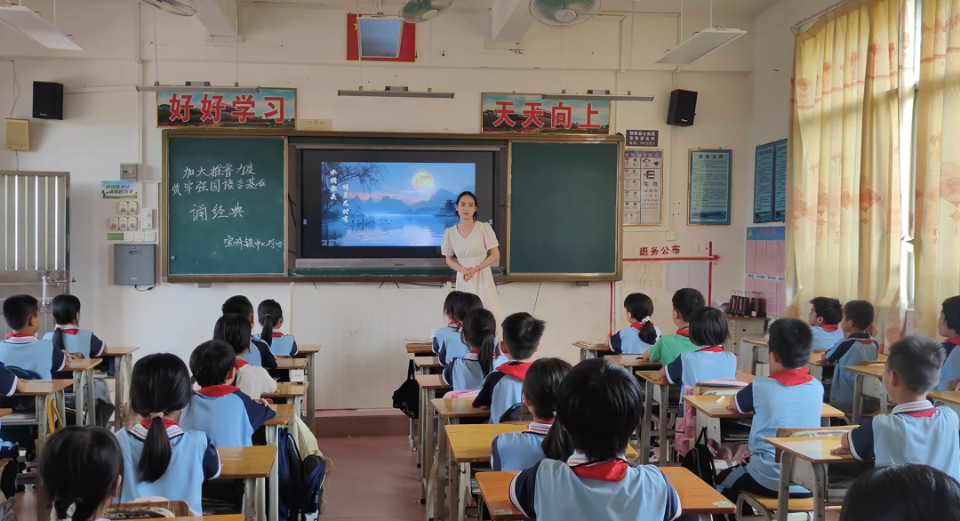 云浮市郁南縣寶珠鎮(zhèn)中心學(xué)校教師鐘凱祈指導(dǎo)四年級(jí)學(xué)生誦讀《水調(diào)歌頭》