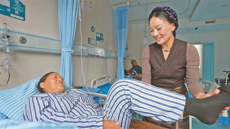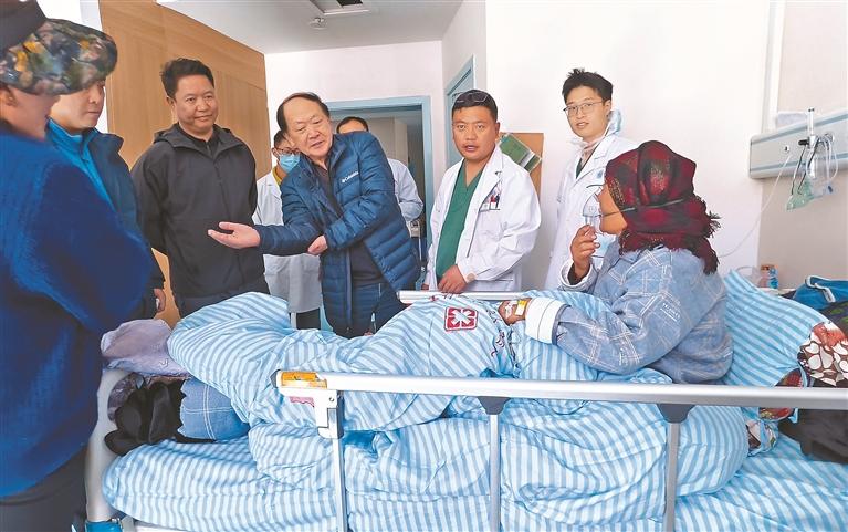 圖為南京市第一醫(yī)院關(guān)節(jié)外科專家團隊了解患者術(shù)后康復(fù)情況。格桑倫珠 攝