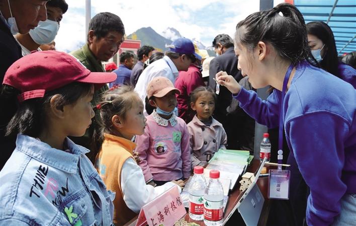 科普援藏專家為當(dāng)?shù)厝罕婇_展科普講解和科普實驗展示。