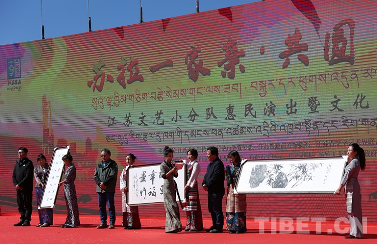 圖為江蘇省文聯(lián)文藝小分隊(duì)走進(jìn)西藏自治區(qū)拉薩市墨竹工卡縣,開展“蘇拉一家親 共圓復(fù)興夢(mèng)”惠民演出暨文化交流活動(dòng)