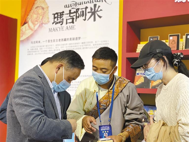 充滿墨竹風情的藏式生活館吸引了不少市民與游客,走進館內,整齊陳列的塔巴陶瓷、藏靴、藏式擺件、藏式水果托盤、唐卡等非物質文化遺產作品和文創(chuàng)延伸產品,色彩濃郁、古樸典雅,原汁原味地呈現(xiàn)了藏式民族特色生活中所涵蓋的細節(jié)。