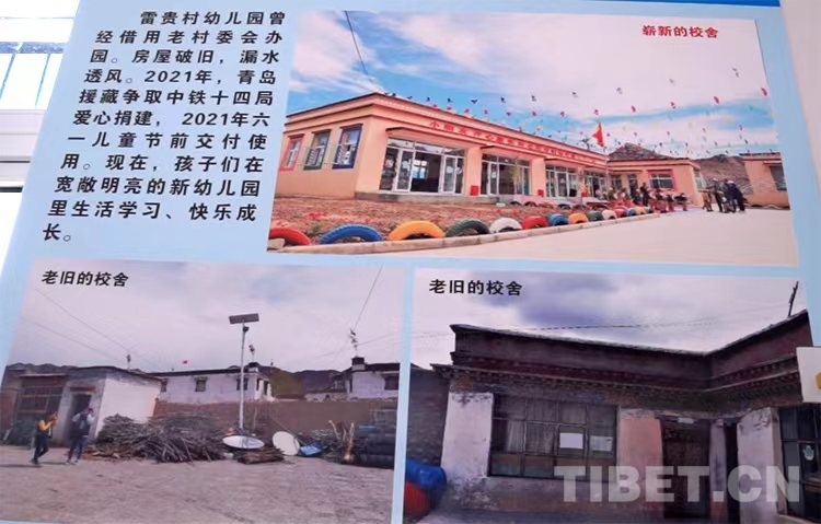 2021年“六一”兒童節(jié)前夕,由青島市第九批援藏工作隊(duì)籌建、中鐵十四局集團(tuán)有限公司捐建的雷貴村幼兒園交付使用,老師和家長(zhǎng)們?cè)僖膊挥脫?dān)心教室漏雨了。