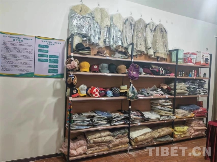 “誠(chéng)信色尼文明積分超市”收到的部分捐贈(zèng)衣物