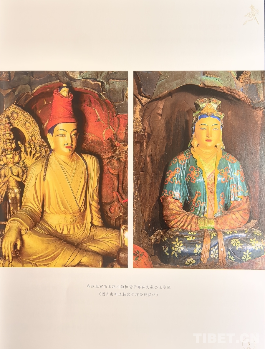 圖為《西藏文物薈萃:上師造像藝術(shù)》一書中布達(dá)拉宮法王洞內(nèi)松贊干布和文成公主塑像 吳雨初翻拍