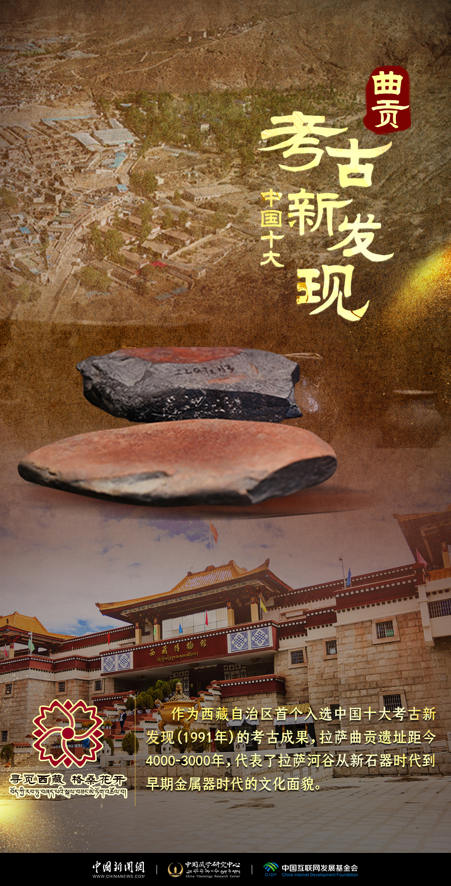 卡若遺址距今約5000年左右,第一次將西藏高原史前人類生存活動的科學(xué)證據(jù)揭露于世。2021年10月,西藏昌都卡若遺址入選中國“百年百大考古發(fā)現(xiàn)”。曲貢遺址位于拉薩市北郊,距市區(qū)約五公里,是迄今在西藏發(fā)現(xiàn)的海拔最高、面積最大,文化層堆積較厚,文化內(nèi)涵極其豐富的遺址之一,被譽為拉薩的“半坡”。它們勾勒出青藏高原的文明年輪。