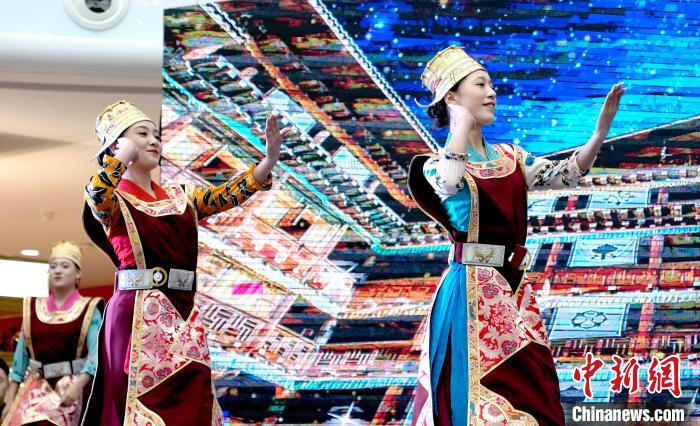 圖為西藏林芝第二十二屆桃花旅游文化節(jié)推介會(拉薩站)現(xiàn)場的文藝演出。李林 攝
