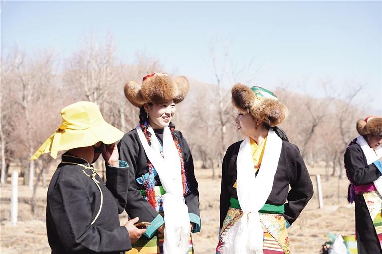 在巴嘎雪村,村民們?cè)缭绲卦谔镩g等待著儀式的舉行。巴嘎雪村二組的旦巴曲桑說:“這是我第三次參加春播儀式,我們?cè)谂e行開耕儀式的前幾天,家家戶戶都要釀造青稞酒,還要給‘鐵牛’準(zhǔn)備裝飾品。在春播儀式開始的這一天,全家人都穿上節(jié)日盛裝,并將耕牛和拖拉機(jī)也打扮得漂漂亮亮的,祈求五谷豐登。”