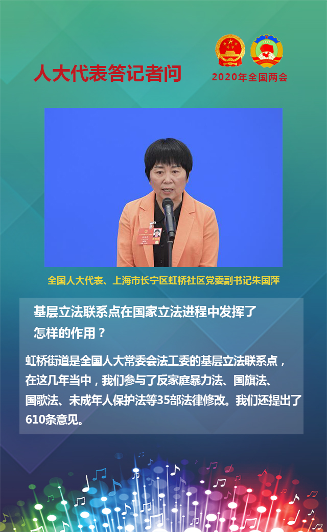 虹橋街道是全國人大常委會(huì)法工委的基層立法聯(lián)系點(diǎn),在這幾年當(dāng)中,我們參與了反家庭暴力法、國旗法、國歌法、未成年人保護(hù)法等35部法律修改。我們還提出了610條意見。