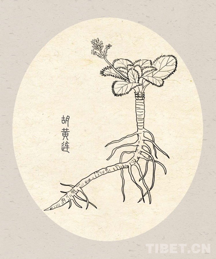圖為手繪青藏高原上的藏醫(yī)藥材