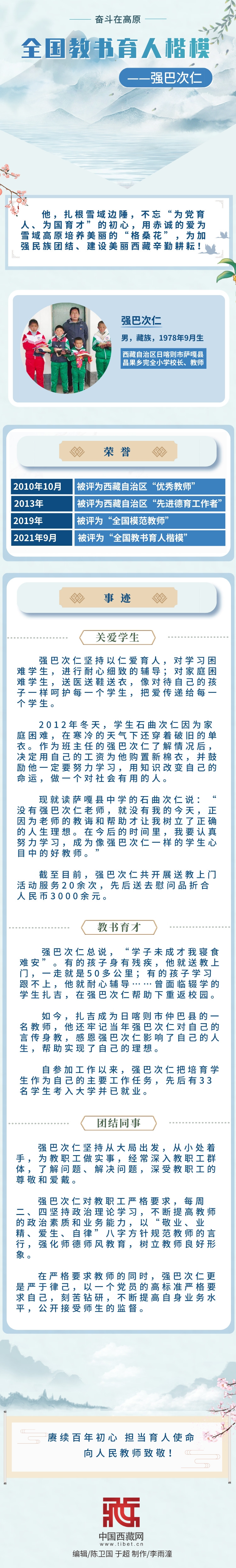 長圖|【奮斗在高原】全國教書育人楷模——強(qiáng)巴次仁