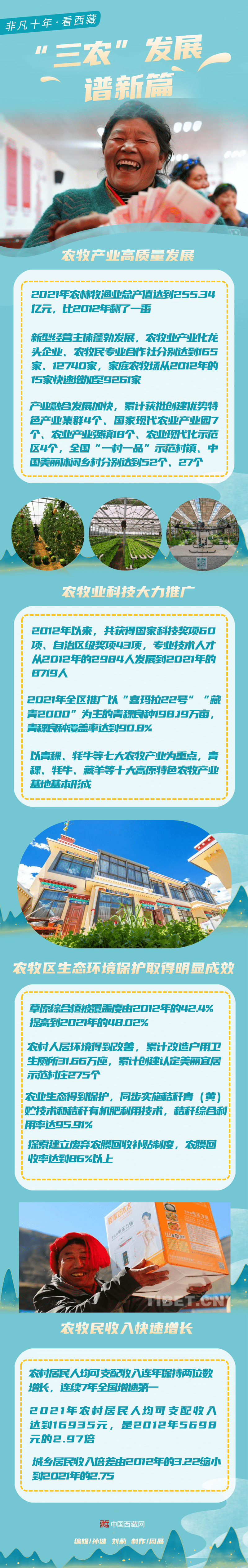 編者按:黨的十八大以來,以習(xí)近平同志為核心的黨中央高度重視西藏工作,習(xí)近平總書記多次對西藏工作作出重要指示批示,召開中央西藏工作座談會,親臨西藏視察指導(dǎo),為西藏工作指明了前進方向、提供了根本遵循。十年來,西藏自治區(qū)認(rèn)真貫徹落實習(xí)近平總書記關(guān)于西藏工作的重要指示,完整準(zhǔn)確全面貫徹新時代黨的治藏方略,堅持以人民為中心的發(fā)展思想,努力推動西藏長治久安和高質(zhì)量發(fā)展,經(jīng)濟社會發(fā)展不斷取得新進步。這是不平凡的十年,這是注定載入史冊的十年,讓我們回顧十年來西藏各項事業(yè)取得的全方位進步、歷史性成就,以奮進新征程、建功新時代的決心與行動,踔厲奮發(fā)、篤行不怠,迎接黨的二十大勝利召開。(中國西藏網(wǎng)編輯/孫健 劉莉 制作/周晶)