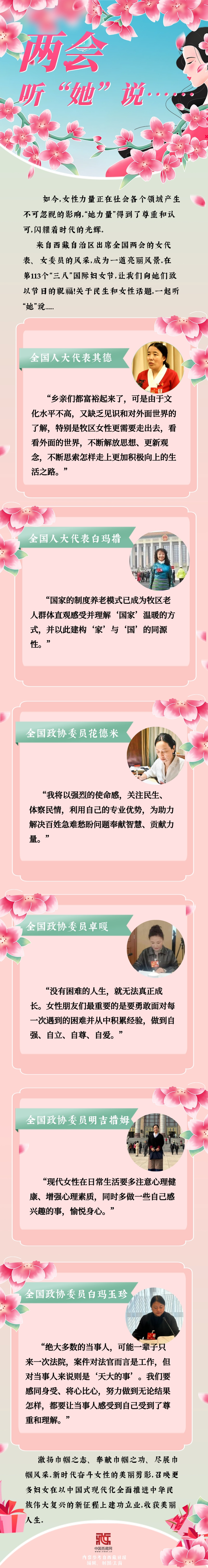 2023年全國兩會,新一屆全國人大代表和全國政協(xié)委員首次亮相。在“三八”國際勞動?jì)D女節(jié)來臨之際,讓我們一起來領(lǐng)略西藏女代表、女委員的履職風(fēng)采![詳細(xì)] -