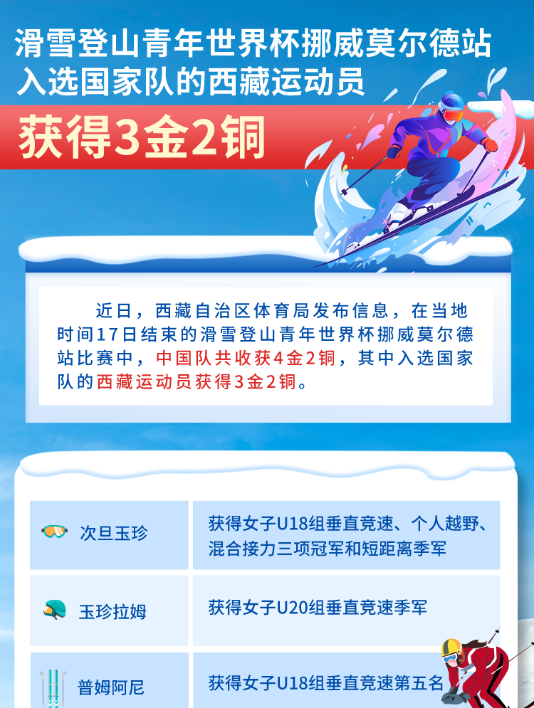 海報|滑雪登山青年世界杯挪威莫爾德站 入選國家隊的西藏運動員獲得3金2銅