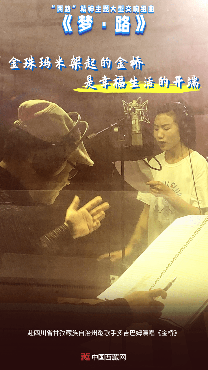 創(chuàng)作團隊三次深入西藏、四川、青海等省區(qū)市的二十多個“兩路”相關(guān)歷史地域,拜訪數(shù)十位民族民間器樂演奏、聲樂演唱、藏戲表演藝術(shù)家和國家級非物質(zhì)文化遺產(chǎn)傳承人,對藏族風格音樂素材進行詳盡細致的采集,從中國愛樂樂團演奏家們的傾情演奏,到四川省甘孜藏族自治州金剛寺大殿采聲,從錄制藏族姑娘銀鈴天籟般的嗓音,到83歲高齡的國家級非物質(zhì)文化遺產(chǎn)傳承人的獻唱山歌……《夢·路》讓大型交響樂和原生態(tài)聲音融合、碰撞、組合,用音符刻畫了中華筑路英雄馳騁世界屋脊的偉大樂章。(中國西藏網(wǎng) 編輯、制作/王茜 供圖/方崠清)