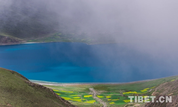 圖為云霧繚繞中的羊卓雍錯(cuò) 攝影:趙耀
