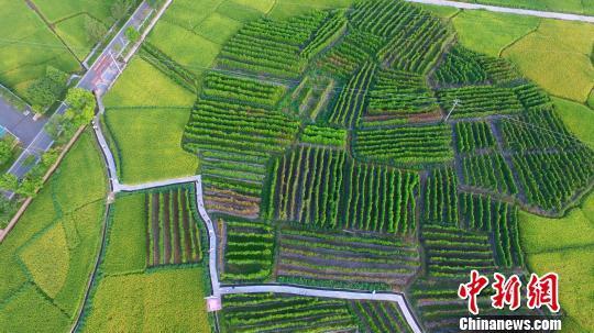 2019年8月24日,航拍江西省安遠(yuǎn)縣鳳山鄉(xiāng)東河村進入采收季的紫山藥基地。 (資料圖) 王劍 攝
