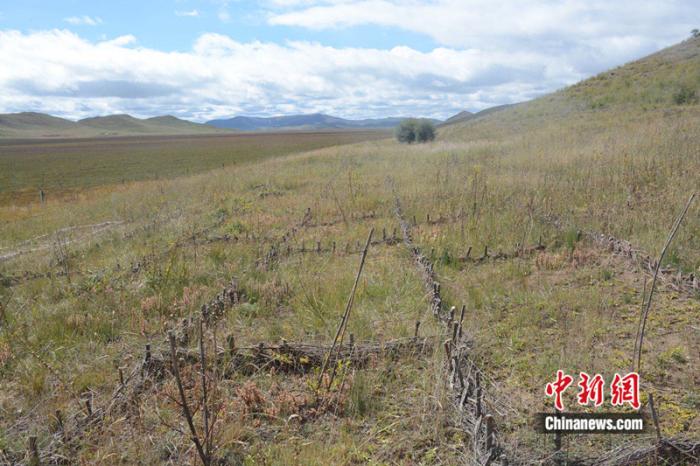 走進四川省阿壩州若爾蓋縣轄曼鎮(zhèn)西倉村治沙點,山坡上巨大的“棋盤”格外醒目??h林草局生態(tài)修復(fù)股助理工程師涂勝介紹,這是用于治理草原沙化的高山柳沙障。