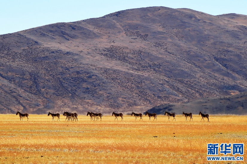 阿里境內(nèi)的藏野驢(10月13日攝)。新華網(wǎng) 張宸 攝