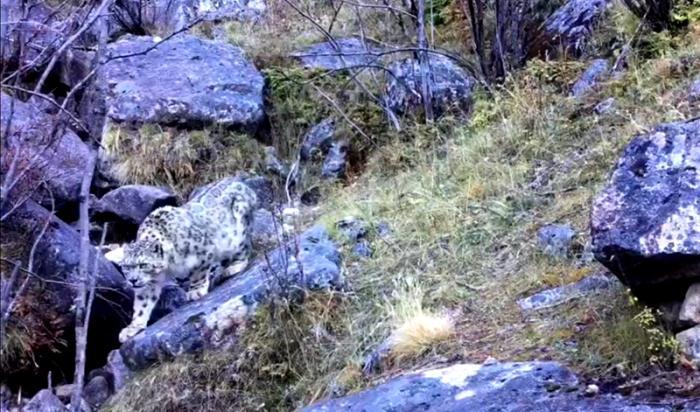 格聶神山景區(qū)首次拍到雪豹。視頻截圖