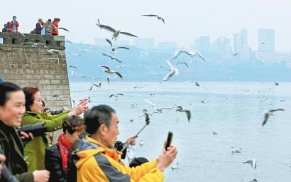 孟冬時(shí)節(jié),久違的暖陽(yáng)普照在瀘州市東門(mén)口長(zhǎng)江江面上,數(shù)百只紅嘴鷗翩翩起舞,休閑的市民盡情享受著大自然的美,笑語(yǔ)聲、風(fēng)聲、水聲、鳥(niǎo)聲相互交織,回蕩著自然生態(tài)和諧的旋律。江河清澈,風(fēng)景優(yōu)美,飛抵瀘州越冬的紅嘴鷗逐年增多,這是瀘州全面推行河長(zhǎng)制帶來(lái)的成效。