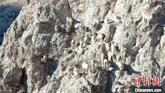 200多只巖羊巡山 祁連山成野生動(dòng)物天堂