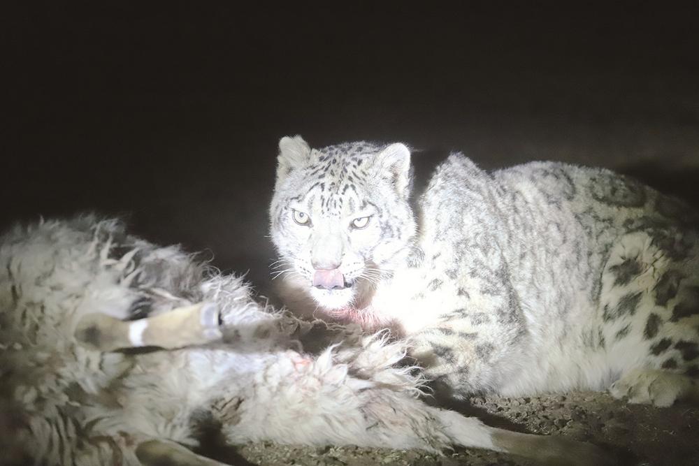生態(tài)管護(hù)員夜拍雪豹下山捕食