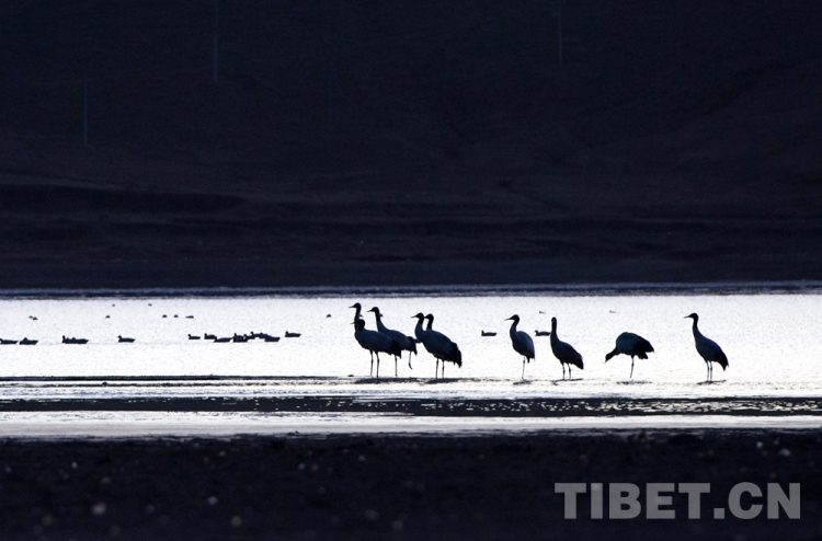兩面夾山、背風(fēng)向陽的虎頭山水庫,是候鳥的主要夜棲地。每年10月中旬開始,國家一級野生保護動物黑頸鶴便從逐漸寒冷的藏北草原出發(fā),成群結(jié)隊地飛越叢山峻嶺遷徙到虎頭山水庫以及其所處的雅魯藏布江中游河谷地帶越冬。
