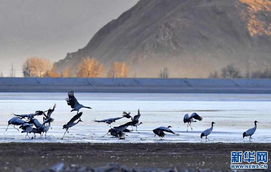 冬日,大批黑頸鶴在西藏拉薩市林周縣境內棲息、覓食。 林周縣黑頸鶴自然保護區(qū)建立于1993年,2003年被設立為國家級自然保護區(qū),是雅魯藏布江中游自然保護區(qū)的核心部分,在每年的11月底至12月初,這里便會迎來成群的黑頸鶴過冬。
