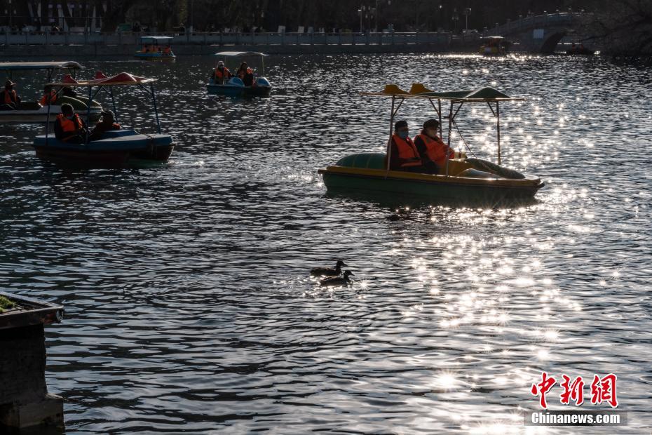 2月24日,西藏拉薩宗角祿康公園,民眾蕩舟游玩。隨著近日氣溫回暖,西藏的春天也悄然到來(lái)。中新社記者 何蓬磊 攝