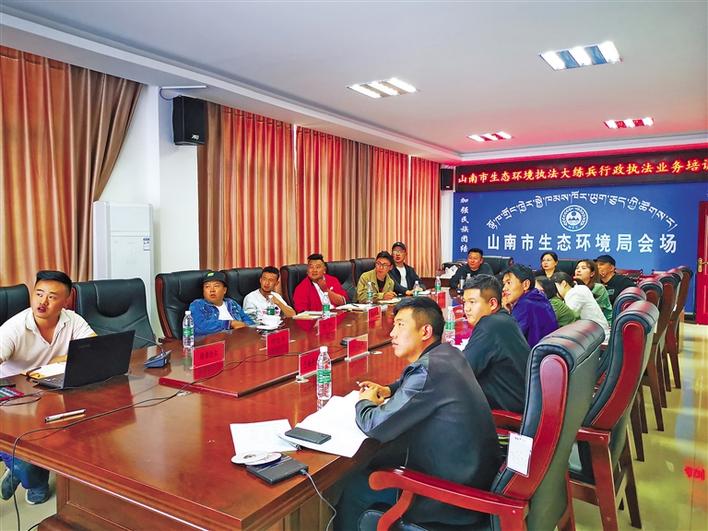 圖為山南市生態(tài)環(huán)境執(zhí)法大練兵行政執(zhí)法業(yè)務培訓現(xiàn)場。巴桑旺姆 次珍 攝