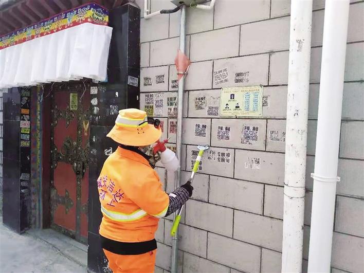 為有效遏制城市“牛皮癬”,拉薩城關區(qū)潔達環(huán)衛(wèi)保潔有限公司強化巡查及整治力度,對小廣告進行徹底清除。對于很長一段時間沒有被清理的小廣告,公司還會對負責相關區(qū)域的環(huán)衛(wèi)工人進行罰款。