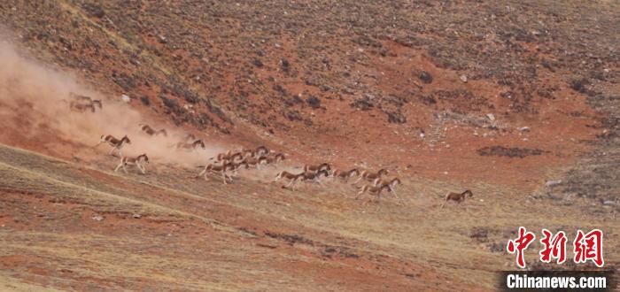 甘肅張掖肅南縣祁豐藏族鄉(xiāng)近日發(fā)現(xiàn)并拍攝到大種群西藏野驢在祁連山奔跑,數(shù)量達80多頭。西藏野驢是國家一級保護動物,是青藏高原大型草食動物,生活于高寒荒漠地帶。近年來,肅南縣通過實施草原禁牧減畜政策、封山育林、加大非法狩獵懲治力度等方式持續(xù)保護和改善生態(tài)環(huán)境,雪豹、藏野驢、黑頸鶴等國家一級野生動物頻繁出現(xiàn),種群數(shù)量不斷擴大。