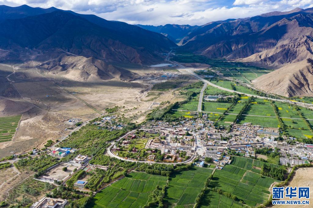 空中俯瞰山南市桑耶鎮(zhèn)(6月2日攝,無(wú)人機(jī)照片)。新華社記者 普布扎西 攝