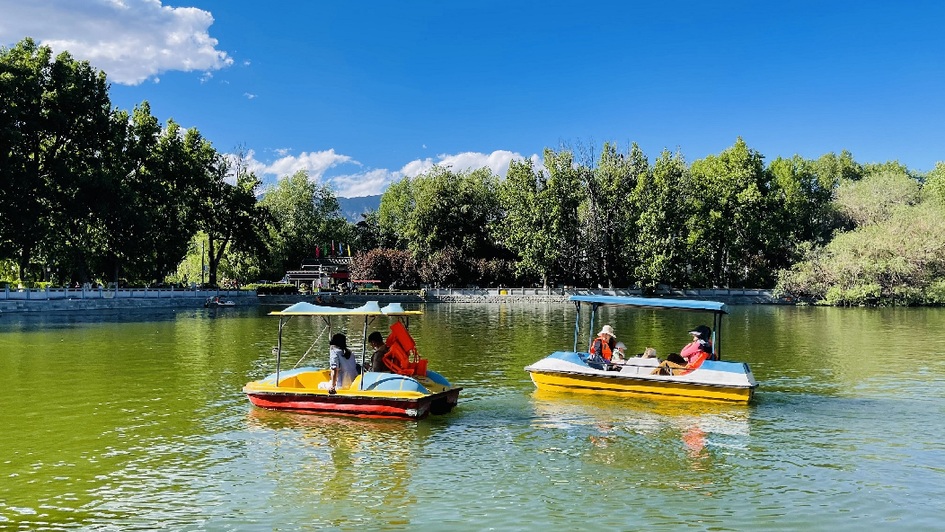 市民和游客在宗角祿康公園乘船游玩(6月14日攝)。 羅布曲珍 攝