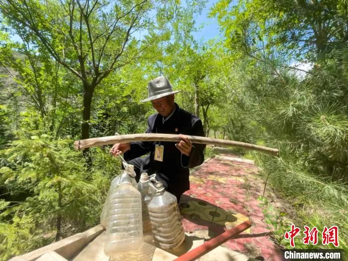 正值烈日當(dāng)頭,禹王峽內(nèi)的一處山坡上,72歲的馬進才穿著中山裝、布鞋,穿梭在林間澆水、巡護,用他的話說,“每天都要來看看‘老朋友’”。