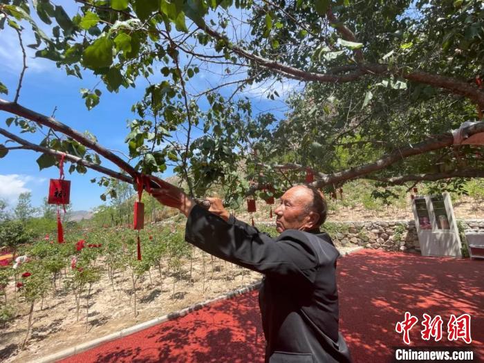 在悉心照料下,山杏樹成活?!斑@可是一桶水一桶水澆大的哩。那時候工資大多是發(fā)糧食,自己還搞養(yǎng)殖,就想著全身心投入到種樹上?!贝文犟R進才辭去工作。