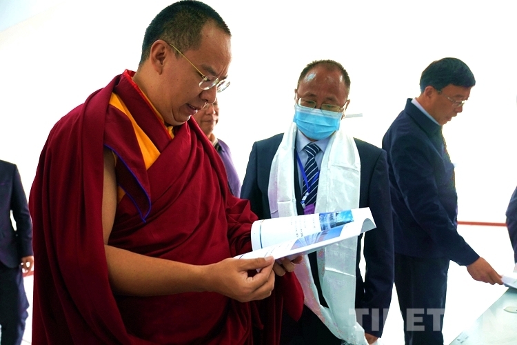圖為班禪認真翻閱申扎縣城集中供暖熱廠有關資料 攝影:王淑