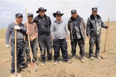 可可西里保護區(qū)工作人員在巡山途中。右三為布周。可可西里管理處供圖