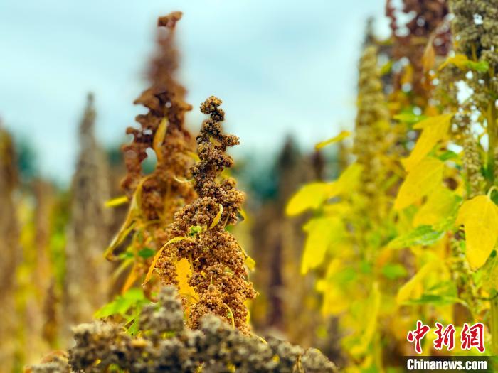 24日,仲秋時節(jié),地處中國“聚寶盆”柴達木盆地腹地的青海省海西州烏蘭縣迎來藜麥成熟豐收季,姹紫嫣紅美不勝收。