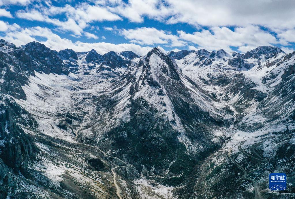 巴巴溝景區(qū)內(nèi)的雪山(10月23日攝,無(wú)人機(jī)照片)。新華社記者 王曦 攝
