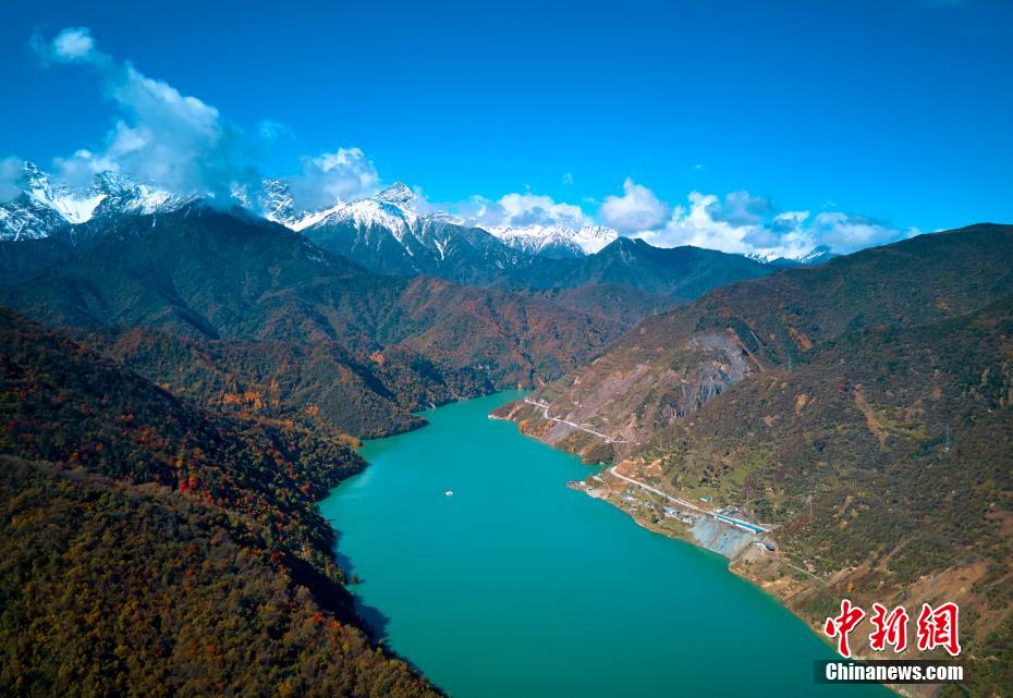 圖為彩林與雪山交相輝映。 胡宇 攝