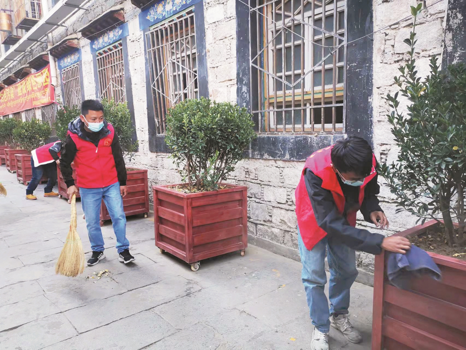 近日,西藏拉薩市城關(guān)區(qū)整治背街小巷工作組工作人員和策門林社區(qū)工作人員共同在策門林社區(qū)開展背街小巷環(huán)境清理工作?;顒?dòng)中,工作人員身穿紅馬甲,大家手拿掃帚、抹布分工合作,各司其責(zé),認(rèn)真打掃轄區(qū)衛(wèi)生,充分發(fā)揮不怕臟、不怕累的精神,齊心協(xié)力為轄區(qū)居民營造一個(gè)更美好、更舒心、更便利的生產(chǎn)生活環(huán)境。同時(shí),工作人員還給社區(qū)居民宣傳環(huán)保知識,引導(dǎo)廣大居民群眾充分發(fā)揮主人翁意識,從自身做起,從一點(diǎn)一滴做起,共同維護(hù)社區(qū)良好環(huán)境。